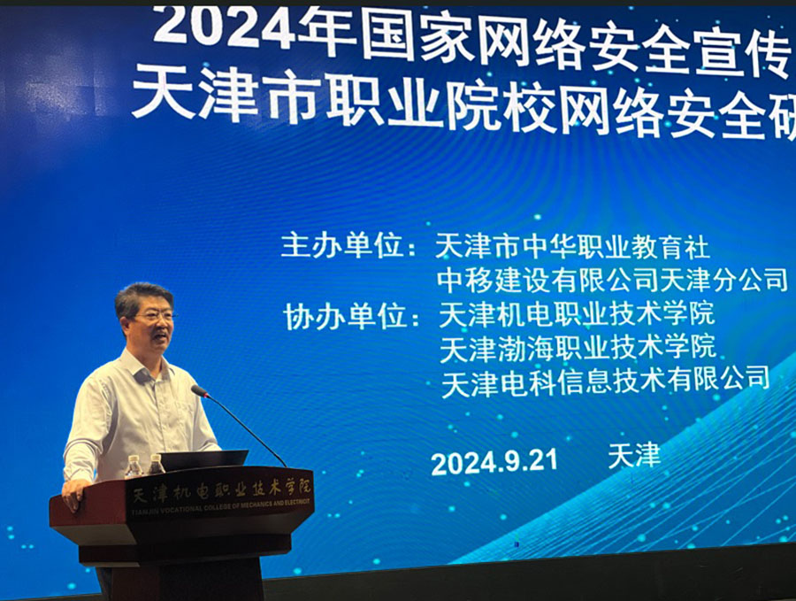 9月(yuè)21日(rì),天津中華職教社、天津度柏信息δ科技有限公司在天津機(jī)電(diàn)職業(yè)技(jì)術(shù)學院舉辦了(le)2024年(nián)國(guó)家(jiā)網↓絡安全周暨天津市(shì)職業(yè)院校(xiào)網絡安全研討(tǎo)會(huì)。來(lái)自(zì)我市(shì)的(de)高(gāo)職、中職、部分(fēn)本科(kē)院校(x∞iào)分(fēn)管網絡安全的(de)負責同志(zhì)參加了(le)此次研討(tǎo)會(huì)。